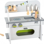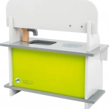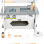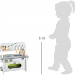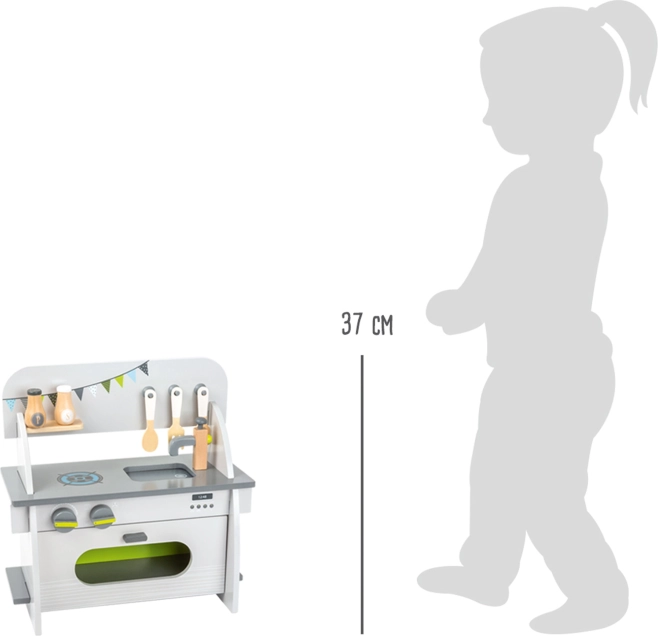 La cuisine est fabriquée en bois 100 % FSC, vous soutenez ainsi une gestion forestière durable pendant le jeu. Son design élégant aux couleurs neutres s’intègre dans tous les intérieurs et, grâce au montage simple, elle se transporte ou se range aisément.