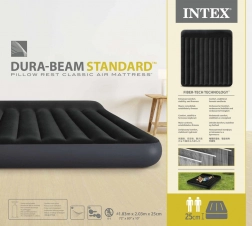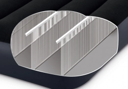 Le lit gonflable INTEX de dimensions 183 × 203 × 25 cm allie stabilité et confort pour les invités à la maison comme en déplacement. La structure interne Fiber-Tech, faite de milliers de fibres polyester solides, assure un soutien uniforme du corps, tandis que la surface floquée (suédine) est douce au toucher et empêche le drap de glisser.