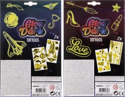 Cet ensemble de tatouages lumineux est idéal pour les filles qui souhaitent ajouter une touche d'éclat à leur style. Profitez des différents motifs disponibles dans l'emballage, qui comprend deux feuilles de tatouages. Il suffit de découper, d'appliquer sur la peau, d'humidifier avec une éponge et c'est prêt ! L'application est rapide et amusante.