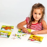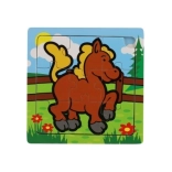 Puzzle en bois pour enfants avec un motif de cheval, qui aide à développer l'imagination et la motricité des enfants.