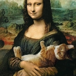 Le motif de Mona Lisa avec le chat Mruczek ajoute un élément amusant et ludique à la scène artistique classique.