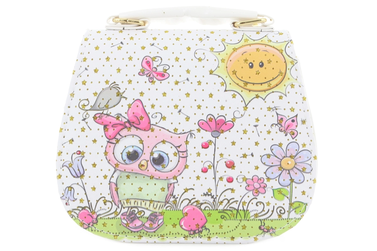 Ce sac blanc avec un hibou est l’accessoire parfait pour les petites demoiselles. Grâce à ses dimensions compactes, il se porte facilement et accueille toutes les petites affaires dont l’enfant a besoin à portée de main – mouchoirs, petits jouets ou trésors ramassés en promenade.