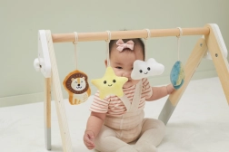Les jouets suspendus cliquettent, bruissent et couinent, stimulant ainsi l’ouïe, la vue et le toucher tout en motivant bébé à s’étirer et à saisir.