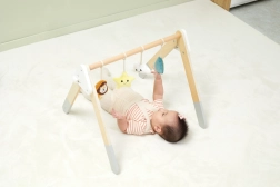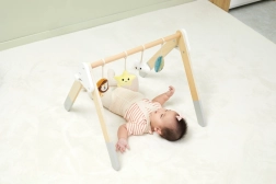 Cette arche de jeux en bois de qualité convient dès le 1er mois. Son aspect naturel et ses couleurs douces s’intègrent à tous les intérieurs. Les jouets suspendus attirent l’attention de bébé grâce aux sons et aux textures variées qui stimulent la vue, l’ouïe et le toucher.