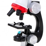 Ce microscope est idéal pour les petits scientifiques et offre trois niveaux d'agrandissement : 100x, 400x, et 1200x. Il est équipé d'une ampoule intégrée pour éclairer les échantillons, permettant ainsi une observation détaillée et offrant des heures de découvertes amusantes.