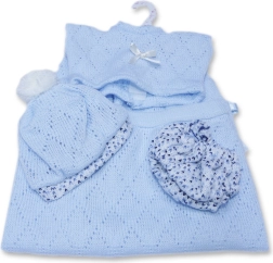 La tenue pour poupée bébé de 26 cm comprend un petit pull, un bonnet et une culotte. Elle est conçue pour offrir un confort maximal et une élégance parfaite lors du jeu. L’emballage inclut également une couverture finement tricotée qui complète l’ensemble. Ce set est emballé dans un étui transparent avec un cintre en plastique ou en carton.
