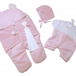 Ce magnifique vêtement pour poupée est fabriqué en Espagne et comprend un ensemble en deux pièces, idéal pour les poupées NOUVEAU-NÉ de taille 40-42 cm. La tenue est livrée avec une couverture en velours pour siège auto et un mouchoir décoratif, ce qui donne aux poupées un aspect réaliste.