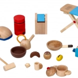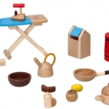 Avec ce magnifique ensemble de 19 jouets en bois, les enfants passeront des heures de plaisir à domicile. Le set inclut divers appareils ménagers qui favorisent le développement des enfants et leur apprentissage du monde qui les entoure. Le paquet contient des jouets tels qu'une cafetière, une théière, un aspirateur, une planche à repasser, et bien plus encore. Chaque pièce est soigneusement conçue pour assurer sécurité et esthétique.