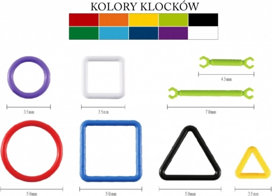 Jeu de construction créatif avec plots, roues, carrés et triangles offrant aux enfants des heures de divertissement et d’apprentissage. Grâce à la variété des formes et à 10 couleurs, il favorise le développement de l’imagination, de la perception spatiale et de la motricité fine. Avec les pièces, construisez facilement une roue, une voiture, une chaise longue ou un parasol – un choix idéal pour les petits constructeurs.