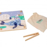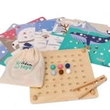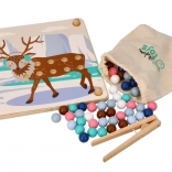 Ce jeu éducatif ludique associe la curiosité naturelle des enfants à l’entraînement des compétences : à l’aide de la pince en bois, les enfants déplacent les billes et les placent dans les trous selon les couleurs et les modèles sur le thème des animaux de l’Arctique (manchot, phoque, renne, ours polaire). Le jeu favorise la concentration, une prise précise et la stabilité de la main – idéal pour les enfants d’âge préscolaire.