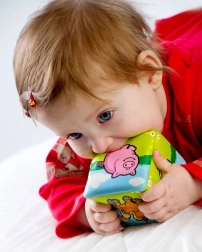 Découvrez le cube à mâcher ludique Mes premiers animaux, qui, grâce à ses illustrations colorées, capte l’attention des enfants et accompagne leurs premières explorations du monde. Le matériau doux est respectueux des gencives, idéal pendant la poussée dentaire et sûr dès 0 mois.