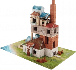 Construisez avec de véritables briques cuites à 1000 °C et complétez la structure avec des éléments en bois authentiques. Le résultat paraît solide et crédible.