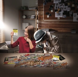 - Puzzle, modèle de l’illustration, 12 cartes d’énigmes, instructions et solution