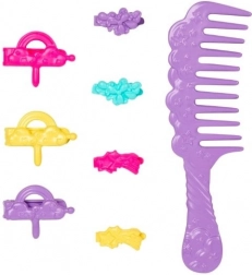 Des clips colorés, des barrettes et un large peigne facilitent le démêlage et assurent une fixation solide des nouvelles coiffures sans tiraillement.