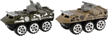 Un tank, une voiture militaire ou un transporteur blindé ne doivent manquer dans aucune armée. Cadeau idéal pour tous les garçons qui aiment les soldats. Si vos enfants aiment les petits soldats et la technologie militaire, ce modèle ne peut pas manquer dans leur collection. Dimensions de l’emballage : 11 × 5 × 4 cm. Convient aux enfants à partir de 3 ans.
