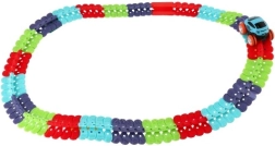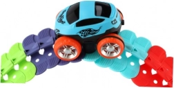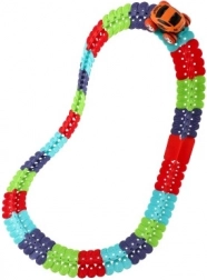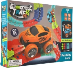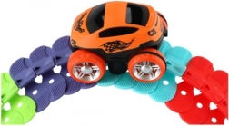 Circuit de course pour enfants avec des pièces flexibles qui permettent de créer sa propre combinaison de couleurs. Comprend une voiture lumineuse pour un plaisir créatif.