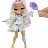 Les mèches pastel violettes et blanches peuvent être brossées, coiffées et accessoirisées avec des lunettes ou des barrettes – idéal pour les petits stylistes.