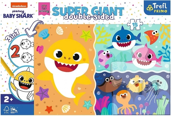 Le puzzle géant Baby Shark de la gamme Trefl Primo offre jusqu’à trois activités ludiques différentes en un seul produit. Ce grand puzzle se compose de 15 pièces, conçues en tenant compte des besoins des jeunes enfants et du développement de leur motricité fine et de leur perception visuelle. Un graphisme simple et coloré avec de grands personnages stimule la découverte et l’assemblage autonome.