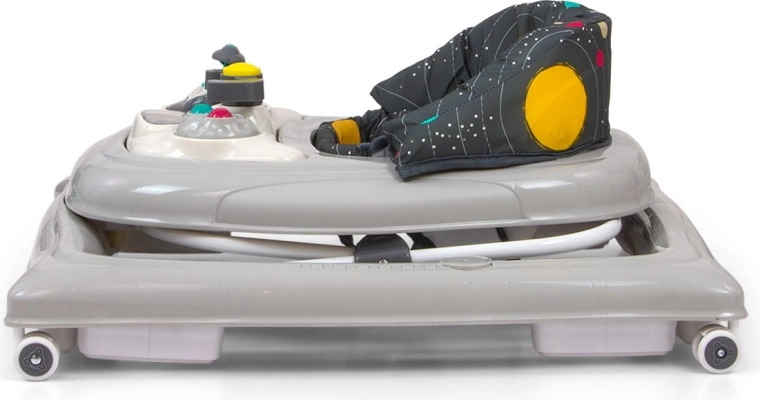 La sécurité est assurée par quatre roulettes de haute qualité qui ne rayent pas le sol et huit butées en caoutchouc qui empêchent l’enfant de descendre des escaliers ou d’autres obstacles.