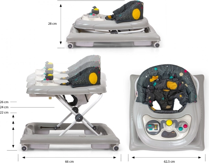 Patrol Cosmos de la marque Milly Mally est une youpala conçue pour les enfants actifs et curieux qui apprennent à marcher. Grâce au siège réglable en hauteur, les pieds de l’enfant atteignent facilement le sol, ce qui favorise un mouvement naturel. Le siège confortable avec dossier garantit un maximum de confort pendant le jeu. Les matériaux sont faciles à nettoyer, ce qui facilite l’entretien.