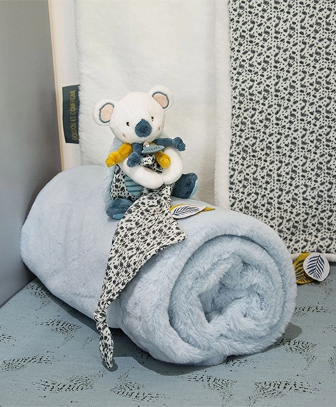 Couverture en peluche pour enfants koala Yoca 70 × 100 cm bleu