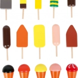 Un ensemble varié de glaces et d’esquimaux en bois inspire les enfants au jeu créatif, au tri et aux associations.