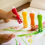 Spužvasti aplikator dozira boju ravnomjerno, pa djeca mogu točkati, pečatirati i bojati bez prolijevanja i nepotrebnog nereda.