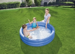 Napuhujući dječji bazen BESTWAY dimenzija 152 × 30 cm idealan je za ljetno osvježenje i sigurnu dječju igru u dvorištu. Konstrukcija od tri identična napuhujuća prstena osigurava izvrsnu stabilnost, dok prethodno testirani, izdržljivi vinil debljine 0,19 mm produljuje vijek trajanja bazena.