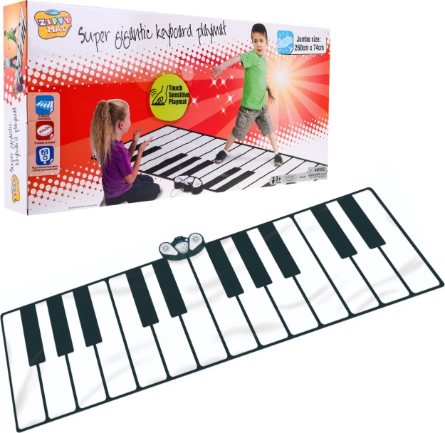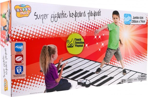 Dimenzije podloge: 260 x 74 cm. Dimenzije pakiranja: 86 cm x 40 cm x 11 cm. Igračka je namijenjena djeci od 3 godine i radi na 4 AA baterije (nisu uključene u paket).