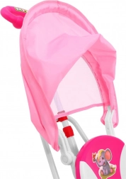 Široki kotači od mekane pjene tiho i udobno upijaju neravnine, prednji kotač sa spojkom olakšava upravljanje, a uklonjiva podloga za noge podupire djecu koja još ne pedaliraju. Slonić na prednjem dijelu skriva pretinac za sitnice, a na upravljaču su zabavni zvučni efekti. Tu su i stražnja košarica, navlaka sjedala i veliki sunčani krović za vožnju u svakom vremenu.
