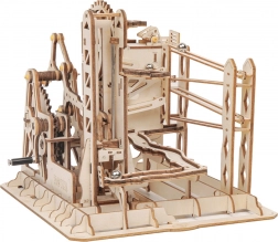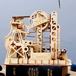 Ovaj mehanički drveni model spaja ljepotu znanosti i strojarstva u dojmljivu stazu za kuglice. Zahvaljujući ručnom pogonu ručicom pokrećete sustav zupčanika, a lift precizno usmjerava kuglice na staze s njihajućim i ravnim tračnicama. Prirodno tako razvijate tehničko razmišljanje, maštu i finu motoriku.