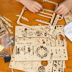 Otkrijte čaroliju mehanike s drvenom stazom za kuglice ROKR Explorer – pametnom 3D slagalicom koja spaja STEM obrazovanje, precizno lasersko rezanje i ručni pogon ručicom. Sastavite model, zakrenite ručicu i promatrajte kako čelične kuglice jure preko dizaličnog lifta, nagnutih zavoja i preklopnog mehanizma na dvije različite rute.
