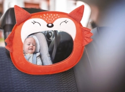 Udobno i zabavno putovanje za najmlađe. Plišanog dizajna lisice, ogledalo uljepšava interijer automobila i pomaže djetetu ostati mirno tijekom duljih vožnji. Zahvaljujući kvalitetnoj zrcalnoj površini, dijete može promatrati svoj izraz i otkrivati mimiku, čime se prirodno razvija njegova pažnja i koncentracija.