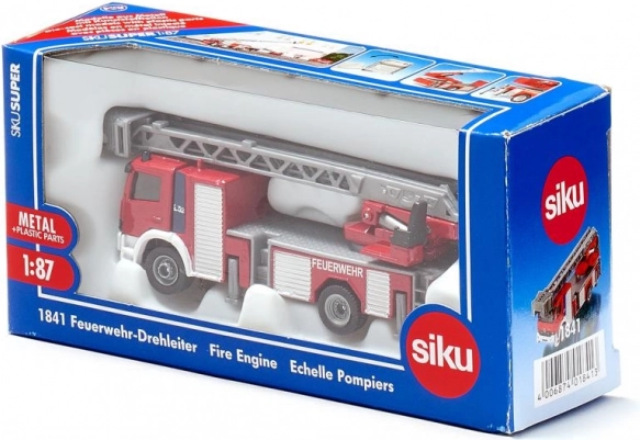 Vatrogasno vozilo s izvlačnim i rotirajućim ljestvama u mjerilu 1:87. Metalni i plastični dijelovi, gumene gume. Idealno za djecu i kolekcionare.