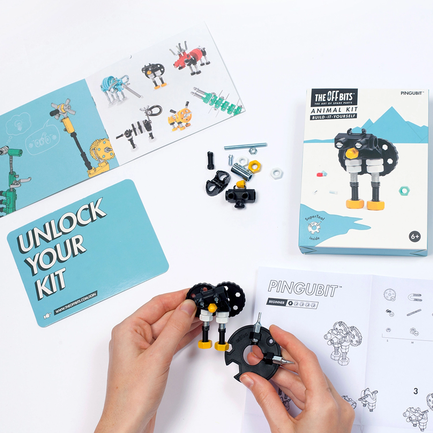 Otkrijte kreativni konstruktor OffBits PingvinBit za djecu od 6 godina koji potiče kreativnost, finu motoriku, logičko razmišljanje i podržava područja STEAM. Uz šarene vijke, matice i oblikovane dijelove sastavit ćete PingvinBit i bezbroj vlastitih maštovitih kreacija.