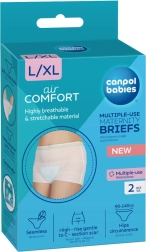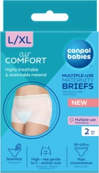 Višekratne poslijeporođajne gaćice CANPOL BABIES od fine mrežice pružaju prozračnost, udobnost i sigurno pričvršćivanje uloška. Zahvaljujući visokom struku nježne su prema ožiljku nakon carskog reza, a njihov elastičan, bešavni kroj savršeno se prilagođava tijelu. U pakiranju su 2 komada veličine L/XL (bokovi 90–140 cm).