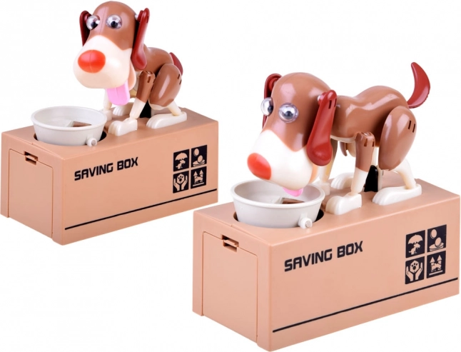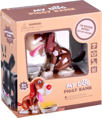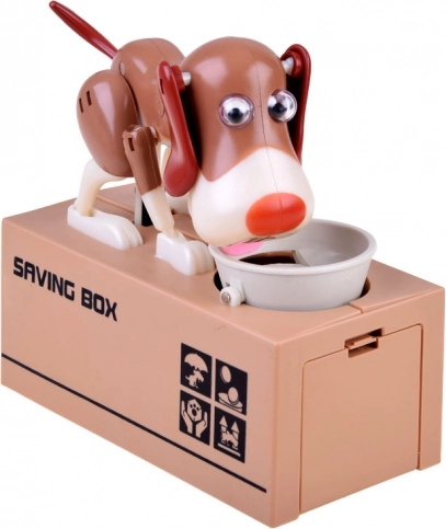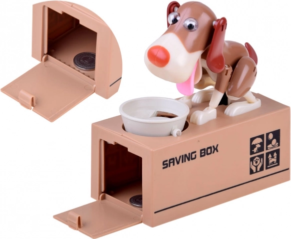 Ubacite kovanicu u zdjelicu ispred psa. Pas se počne micati kao da jede hranu iz zdjelice, što uzrokuje da kovanica padne u kasicu. Pas se pri tome veselo kreće i trese ušima. Za rad su potrebne 3 baterije. Kasica pomaže djeci shvatiti da je štednja ne samo zabavna, već donosi i pozitivne rezultate.