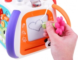 Ugrađeni znikopis s cvjetnim stylusom potiče prve kreativne korake. Klizni paneli stvaraju iluziju pokreta i zabavnu vizualnu igru.