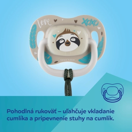 Umirite svoje dijete s dudom Canpol babies EXOTIC ANIMALS 18m+. Simetrična silikonska duda od hipoalergenog materijala bez BPA je otporna na deformacije, bez okusa i mirisa te se lako prihvaća. Prozračan štit osigurava slobodno disanje i smanjuje iritaciju kože, a praktična ručkica olakšava pričvršćivanje. Sjajeći element pomaže brzo pronaći dudu noću.