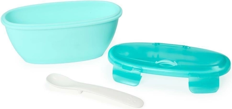 Ovaj praktični set za hranjenje za djecu brenda Skip Hop nudi udobnost i sigurnost pri hranjenju na putu. Zdjela zapremnine 240 ml opremljena je mjernim oznakama u imperijalnim i metričkim jedinicama, što pomaže pri preciznom doziranja. Materijal je prikladan za upotrebu u zamrzivaču, mikrovalnoj pećnici (bez poklopca) i perilici posuđa (samo gornja košara), što pruža izvrsnu fleksibilnost za pohranu i zagrijavanje hrane. Proizvod je namijenjen djeci od 3 mjeseca i ne sadrži BPA ni ftalate.