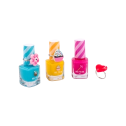 Svaki lak prati tematski prsten (cvijet, srce, cupcake) koji se može nositi samostalno ili uskladiti s odabranom bojom.