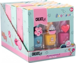 Uljepšajte djeci svaki dan zabavnim setom lakova za nokte s prstenima CREATE IT!. U pakiranju se nalaze 3 šarena laka i 3 slatka prstena (cvijet, srce, cupcake), idealno za kreativni nail art i prve eksperimente s kozmetikom. Sigurno za djecu od 6 godina, u razigranom poklon-pakiranju – savršeno kao mali poklon ili za zabave.