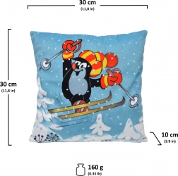 Ovaj jastučić izrađen je od mikrovelura, što jamči mekoću i udobnost. Na prednjoj strani nalazi se tiskani motiv Krtka, uvijek omiljenog junaka djece. Stražnja strana je u svjetloplavoj boji, koja se lijepo uklapa u svaku dječju sobu.
