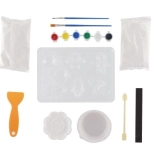 - Kompletno pakiranje – kalupi, gips, boje i kist za trenutno stvaranje.