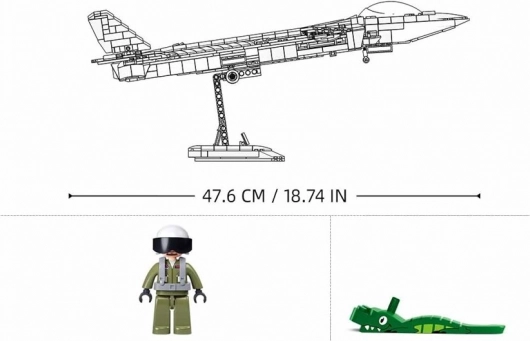 Zahvaljujući više od tisuću dijelova uživat ćete u promišljenoj konstrukciji: odvojivi kokpit za pilota, sklopiva kola s preklopnim podvozom i integrirani projektili podržavaju autentičan izgled. Prednja bočna krilca i stražnja gornja krila s mogućnošću nagiba daju modelu dinamiku, kao da je spreman za polijetanje.