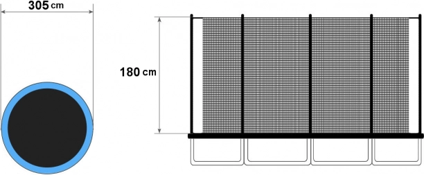 Mreža je kompatibilna s većinom 10 FT trampolina raznih marki. Prikladna za konstrukcije s 4 dvostruke noge (8 stupova) i jednostavna za ugradnju.