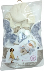 Ova elegantna odjeća za lutku NEW BORN ističe se pomnom izradom i bezvremenskim dizajnom. U setu ćete naći usklađene pletene i tekstilne komade za svakodnevni i zimski styling, dopunjene mekom podlogom s kapuljačom i praktičnim remenima, zahvaljujući kojima se lutka lako prenosi.