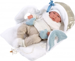 Priuštite svojoj lutki stil i udobnost uz ovaj 6‑dijelni set odjeće NEW BORN za lutke 40–42 cm. Ručno izrađeno u Španjolskoj, set uključuje meku podlogu s kapuljačom i remenima za nošenje, kako bi presvlačenje i putovanje s lutkom bilo lako i zabavno. Kvalitetni pleteni materijali u nježnim neutralnim i plavim tonovima potiču kreativnu i brižnu igru djece od 3 godine.