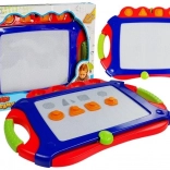 Predstavljeni set sastoji se od ploče impresivne veličine, stilusa i četiri pečata u obliku geometrijskih likova. Veliku magnetnu ploču čine neutralne, ugodne boje klasičnih tonova koje će se svidjeti i djevojčicama i dječacima. Sa strane se nalaze ručke za jednostavno prenošenje igračke.