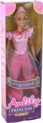 Predstavljamo lutku Anlily, koja će postati omiljena igračka svake male dame. S dimenzijama 30 cm x 7 cm x 5 cm savršena je prijateljica za svakodnevnu igru. Lutka je odjevena u ružičastu haljinu s bogatim detaljima, ukrašena brokatom i tilom. Njezin ukusan stil nadopunjuje ružičasta tiara i elegantna ružičasta ogrlica.